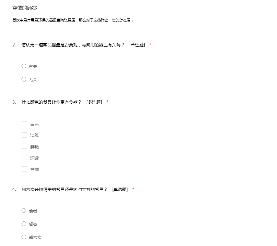 餐饮业问卷调查