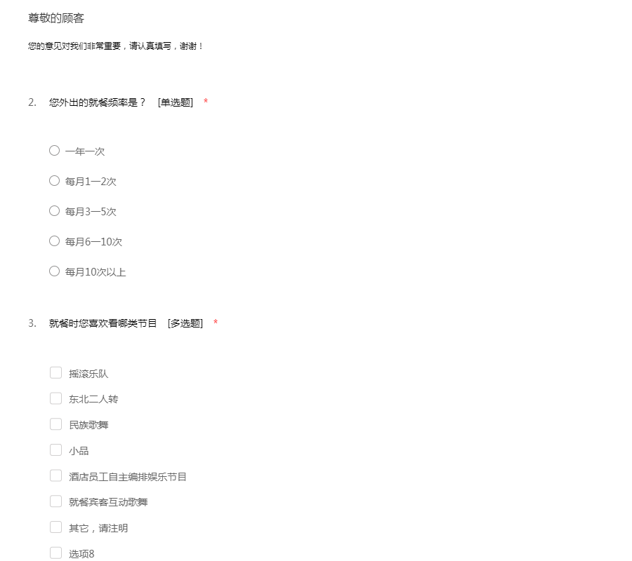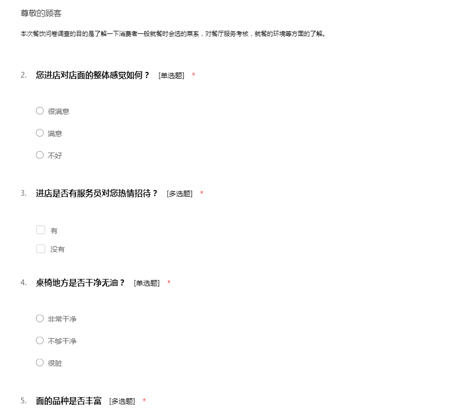 此次餐饮服务调查问卷仅用于数据分析,绝不会透露大家的隐私。餐饮服务调查问卷由51调查网(http://www.51diaocha.com)提供。