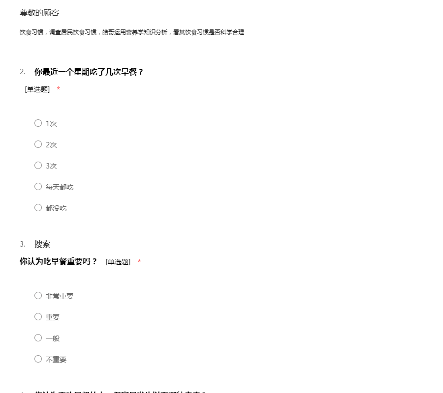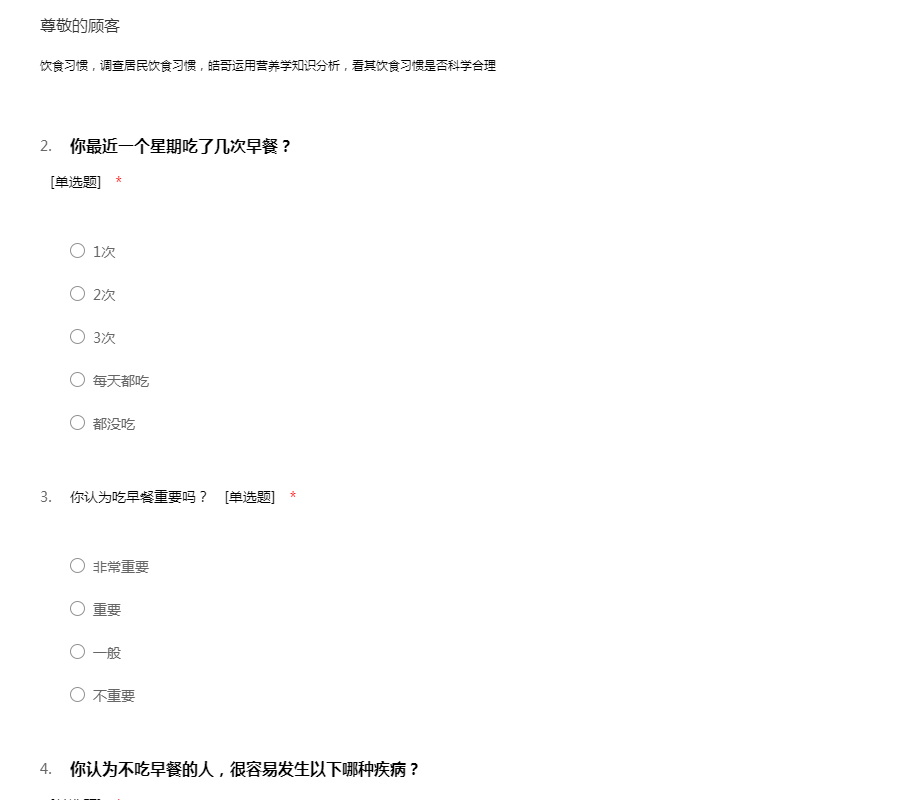 感谢您参与“营养快餐调查问卷”,本次调查目的在于了解消费者对于健康减脂的营养餐的需求性。调查所得的结果对您的工作和生活不会带来任何不良影响,请您根据自己的实际情况放心填写,51调查网感谢您的配合!