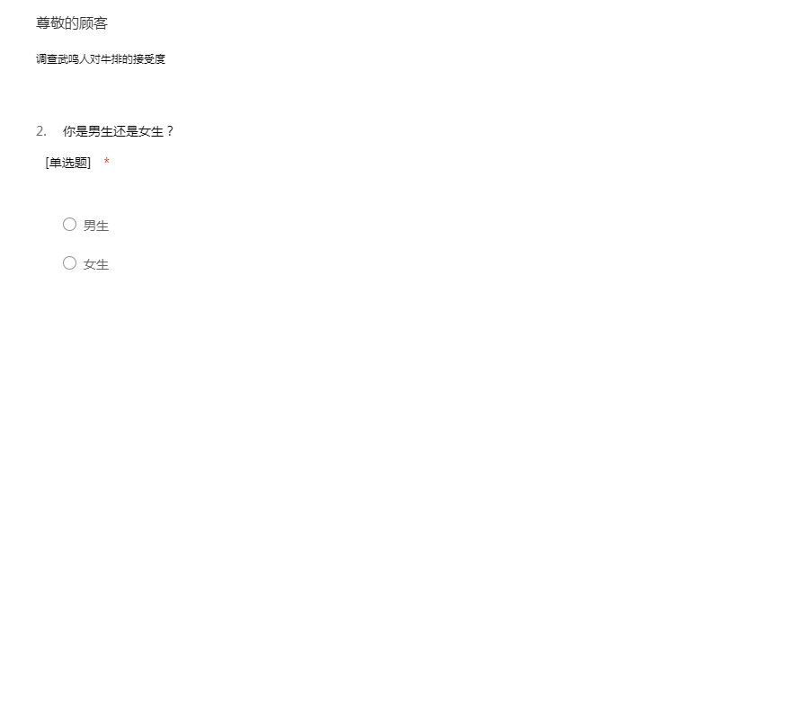 亲爱的朋友: 您好! 感谢您在百忙之中给予调查温暖的支持,这个调查不会对您的生活造成任何影响,时间只有短短一分钟不到。 茫茫人海漂泊的小小问卷,能有您真挚的支持,请接受我深深地感谢。