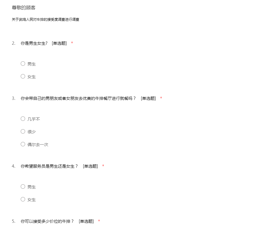 关于武鸣人民对牛排的接受度调查进行调查