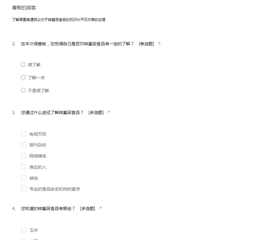 关于转基因食品的调查问卷