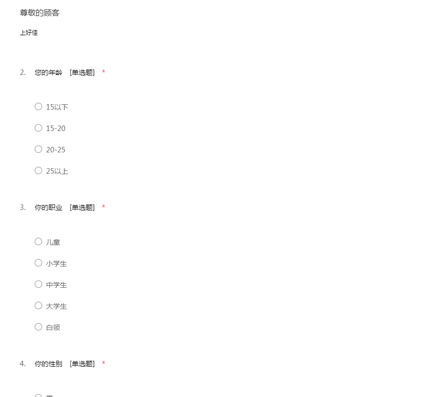 您好,感谢您接受邀请参加本次企业内部食品品尝活动的甄选,我们想对您的日常习惯等进行一个了解,您的回答没有对错之分,请据实回答,我们会保密并且不会透露给任何第三方,感谢您的配合!