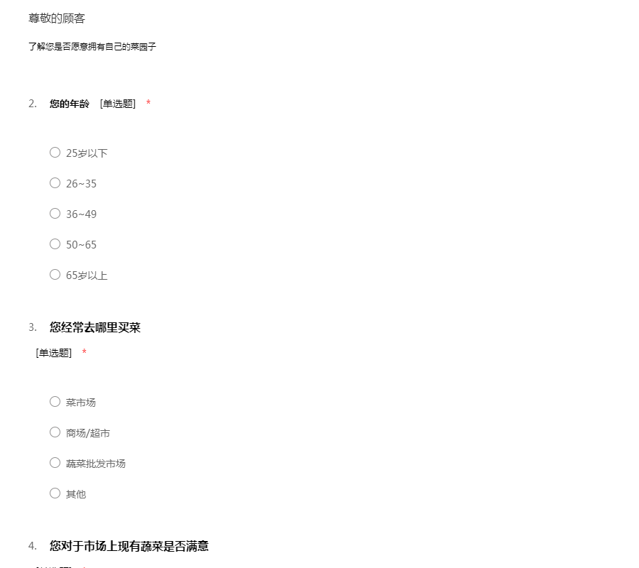您家的菜园子问卷调查