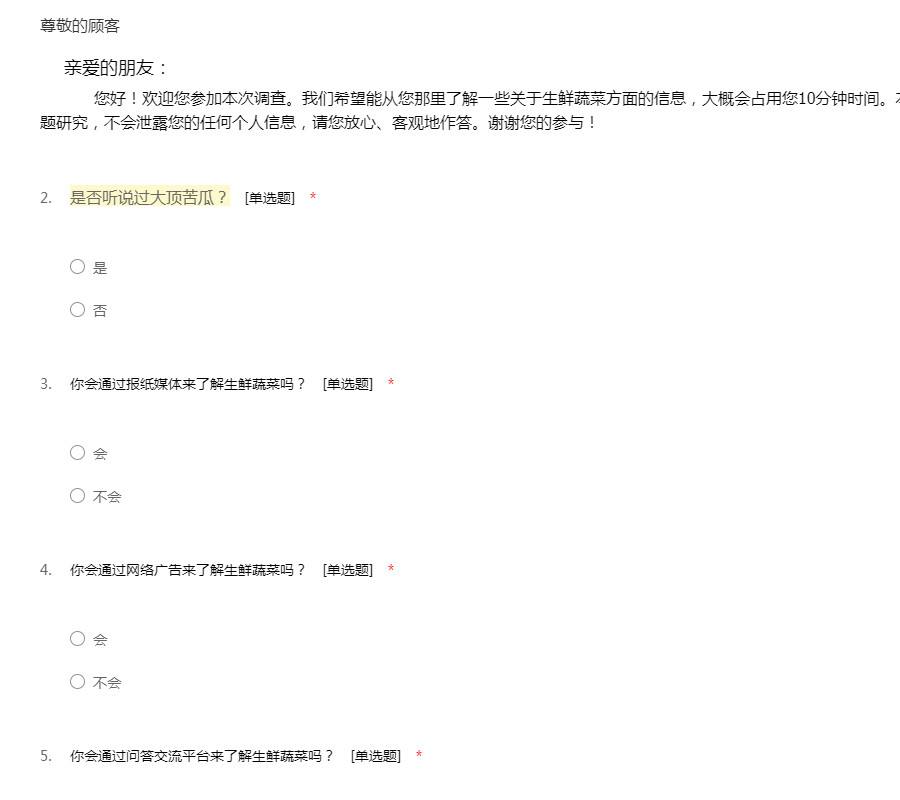 蔬菜市场的问卷调查