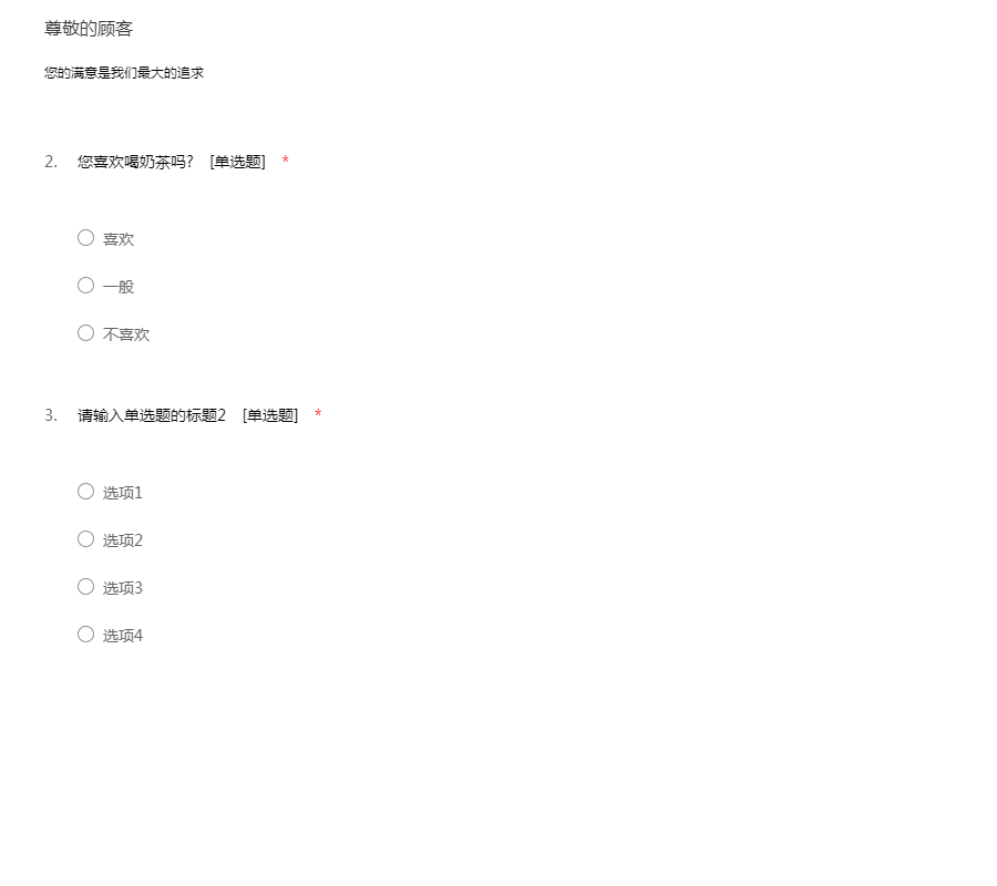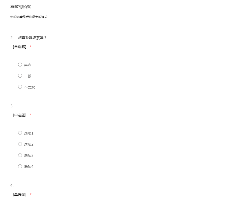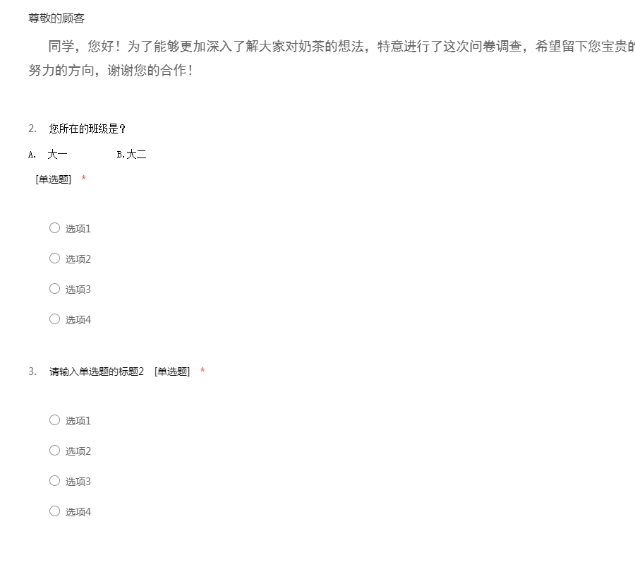 同学,您好!为了能够更加深入了解大家对奶茶的想法,特意进行了这次问卷调查,希望留下您宝贵的意见,您的意见将会成为我们努力的方向,谢谢您的合作!