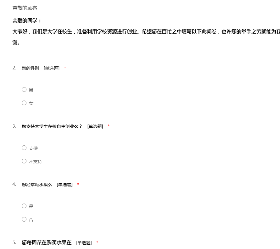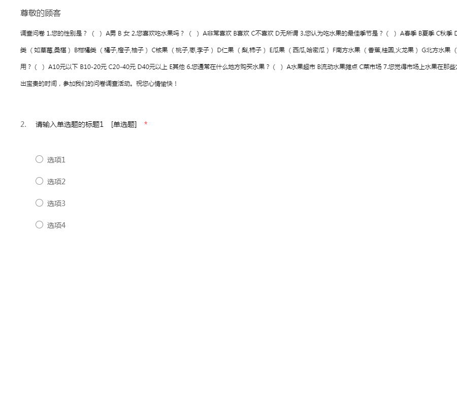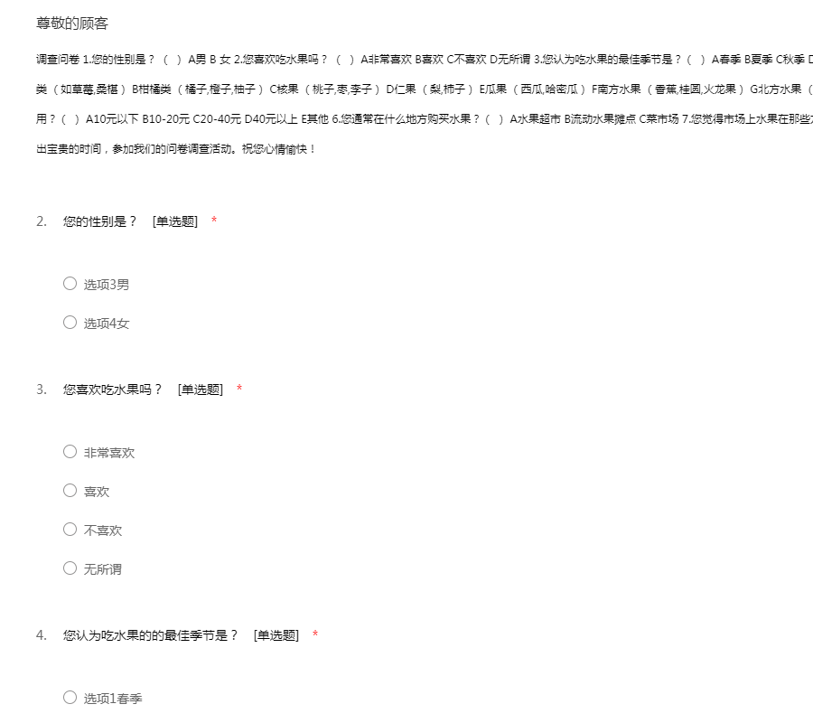 2.您喜欢吃水果吗? ( ) A非常喜欢 B喜欢 C不喜欢 D无所谓