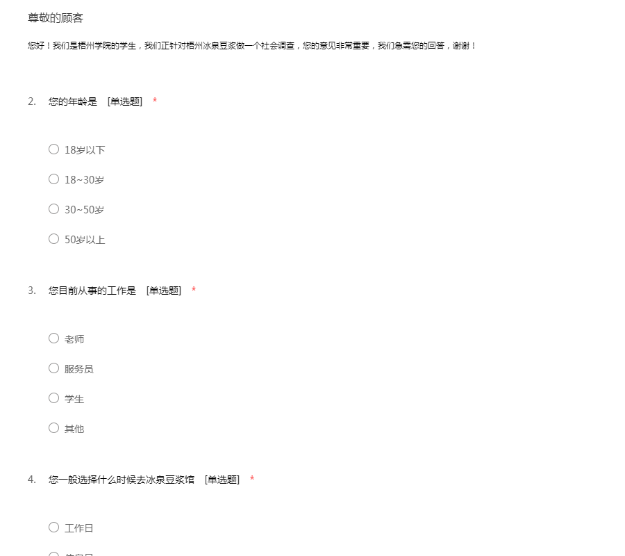 您好!我们是梧州学院的学生,我们正针对梧州冰泉豆浆做一个社会调查,您的意见非常重要,我们急需您的回答,谢谢!