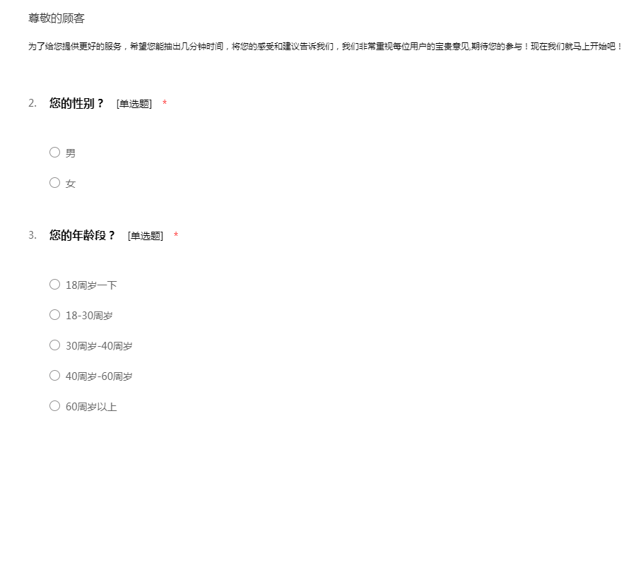 为了给您提供更好的服务,希望您能抽出几分钟时间,将您的感受和建议告诉我们,我们非常重视每位用户的宝贵意见,期待您的参与!现在我们就马上开始吧!