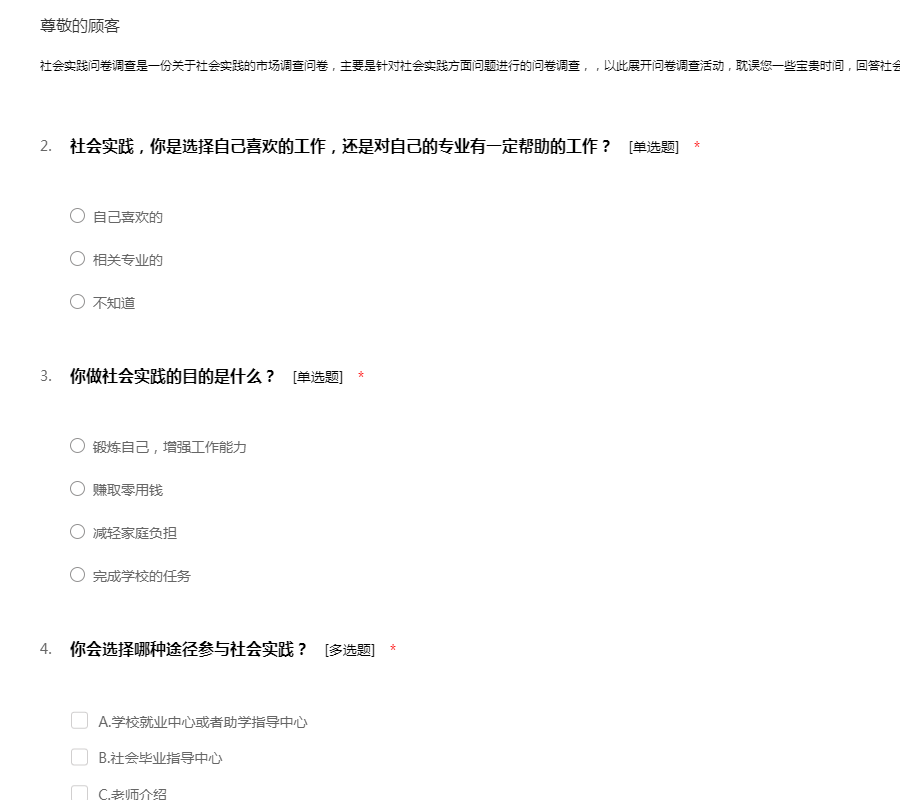 社会实践问卷调查