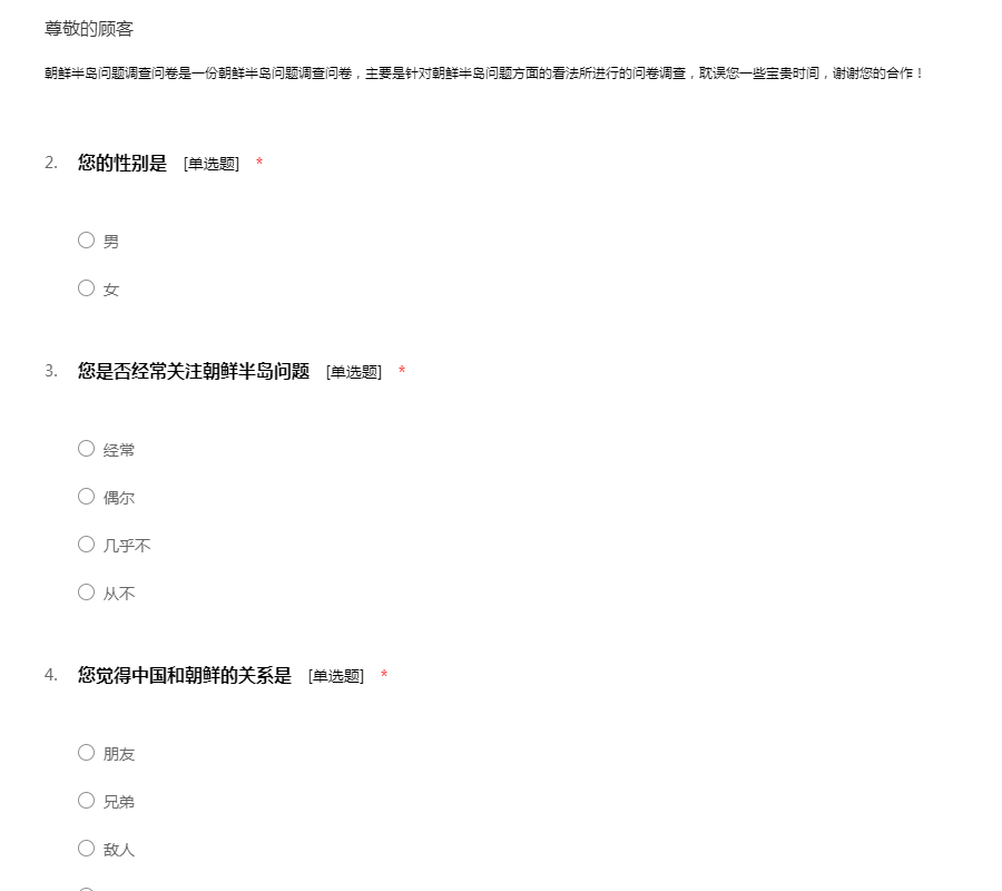 朝鲜半岛问题调查问卷