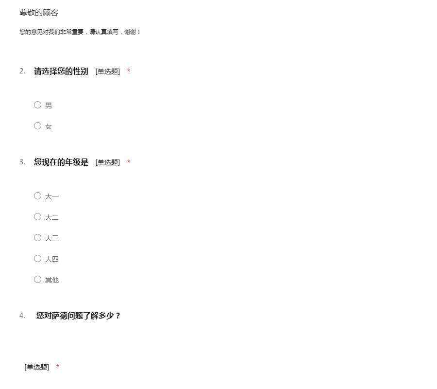 关于萨德问题的调查问卷