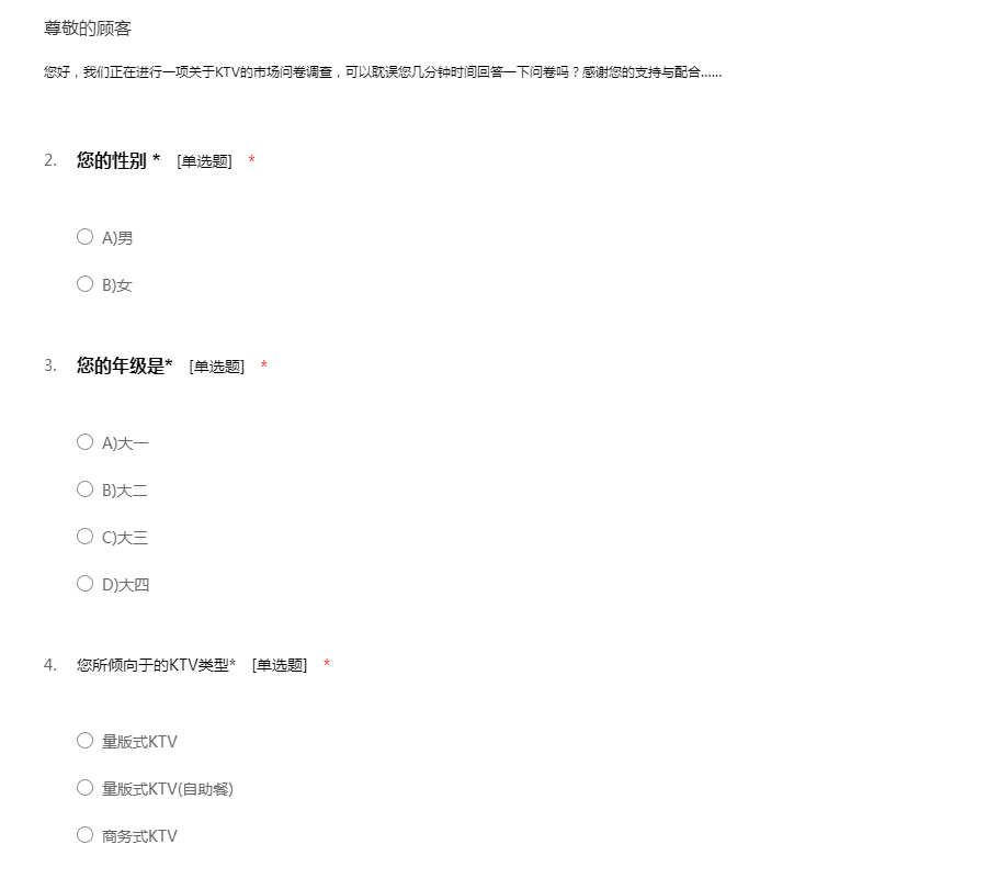 KTV市场问卷调查