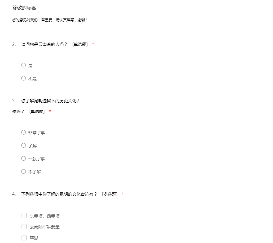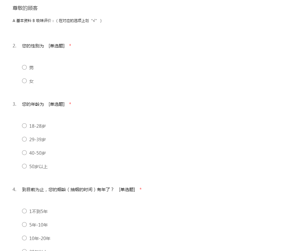 您好!非常感谢您抽空参与我们的问卷调查,此次问卷调查不会泄露您的个人隐私,本问卷所有答案没有对错之分,请您根据自身情况实际填写,无需署名,谢谢您的配合。