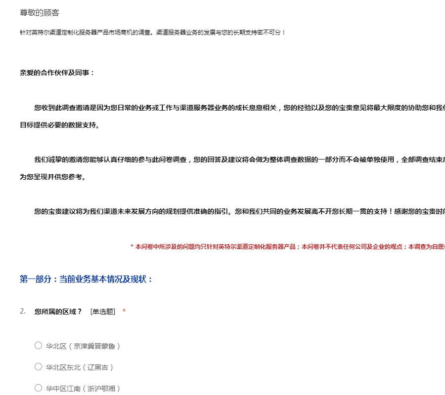 针对英特尔渠道定制化服务器产品市场商机的调查。渠道服务器业务的发展与您的长期支持密不可分!