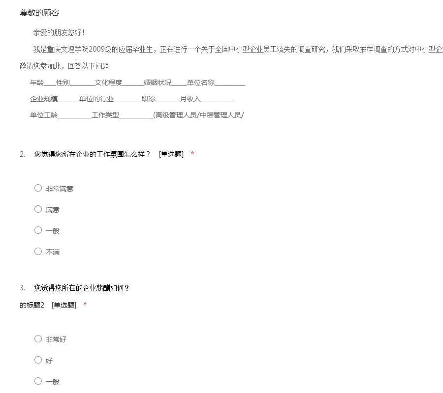 工作环境:包含工作管理环境和周边的自然环境,还有工作的安全性:该要项的设置目的是用于测量您的员工如何看待诸如他们的工作环境条件、设备工具的质量以及在工作场所当中对于安全的整体意识等方面问题。每一个组织都要对员工的健康和安全负责。一个缺乏安全保障的工作环境将导致各类事故、法律诉讼和工作延迟等一系列问题。所有这些事故可能给您的组织带来非常巨大的损失。该要项下的所有问题将调查您的员工对于公司的设施工具是否满意,他们是否相信工作是在以一种安全的方式进行,以及提供给他们的工具设备是否能够满足他们去安全成功地完成工作。