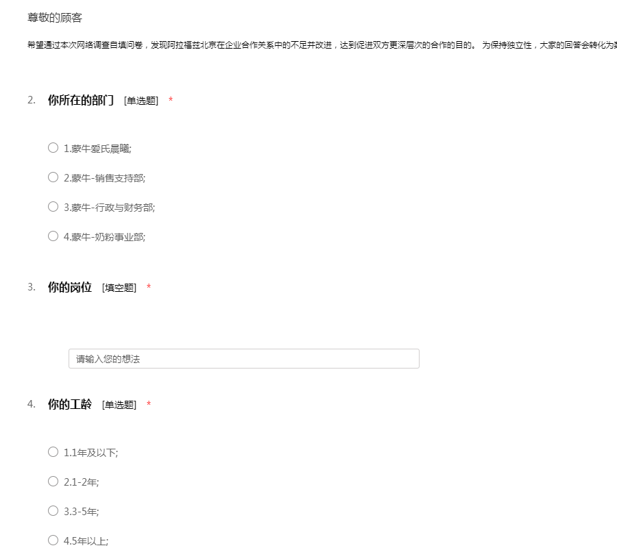 员工工作环境满意度问卷模板