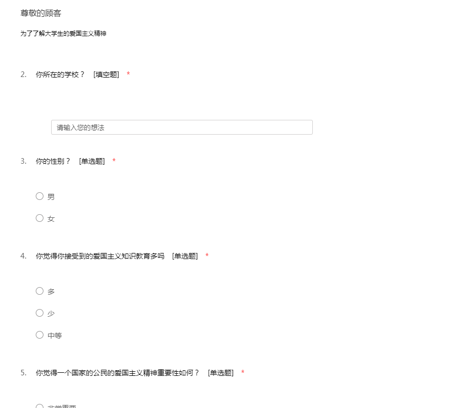 亲爱的同学,你好!大学中的情侣,已是各大高校中一道亮丽的风景线。已在大学中的不是否恋爱进行中,还是还在等待心仪的Ta?你对爱情有何见解?你的爱情观又是怎样的?快快把你的想法填入这份大学生爱情观调查问卷吧!