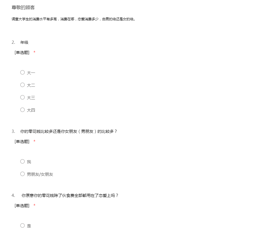 调查大学生的消费水平有多高,消费在哪,恋爱消费多少,由男的给还是女的给。