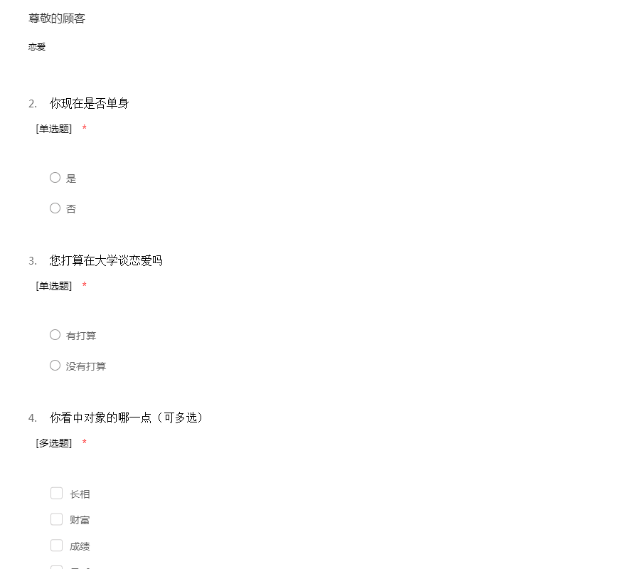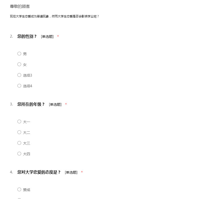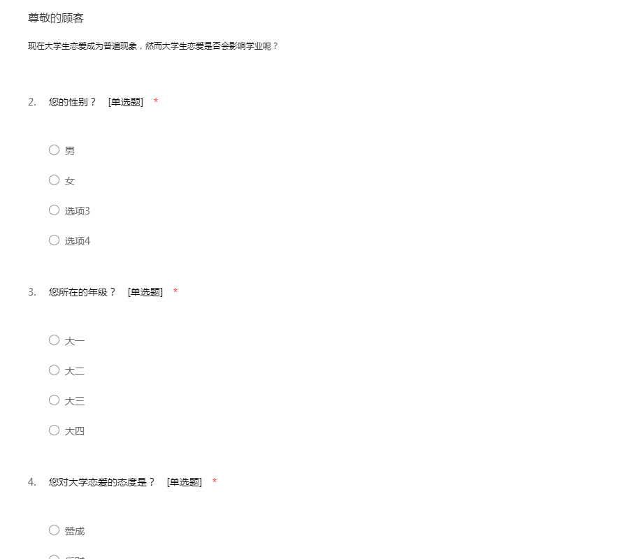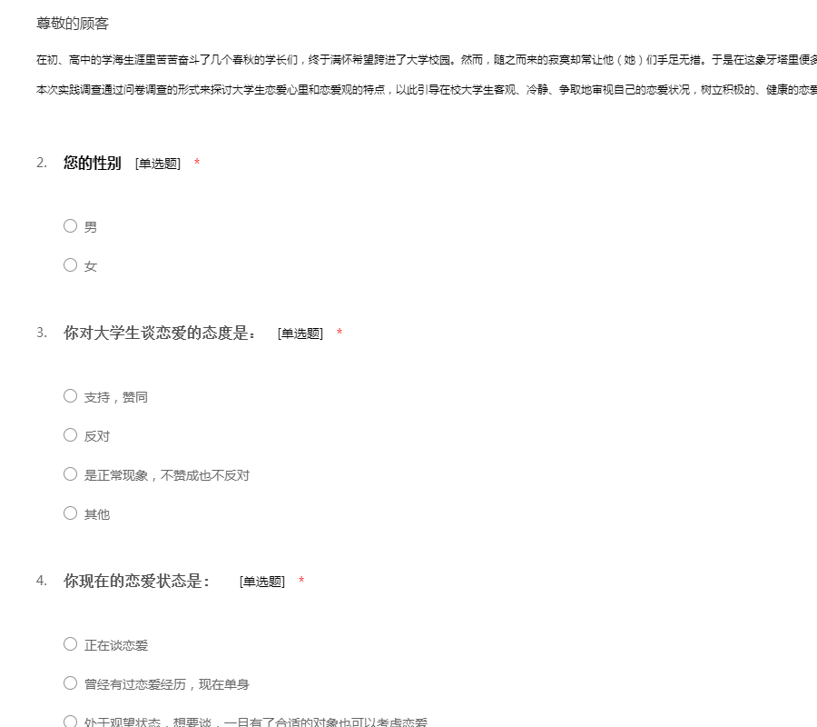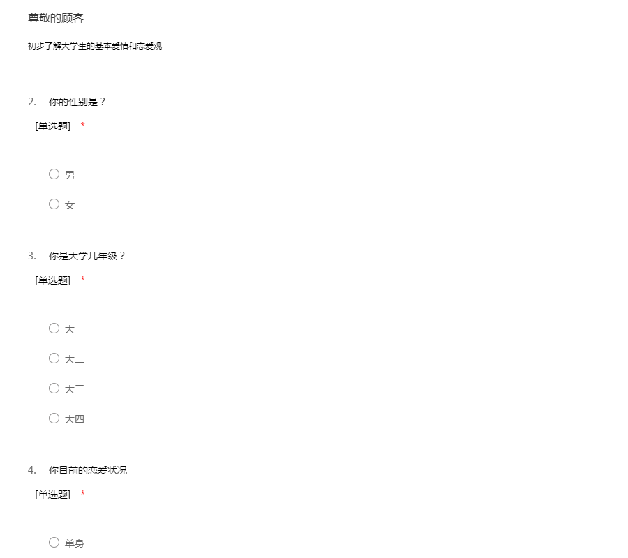 大学生恋爱问题的调查问卷