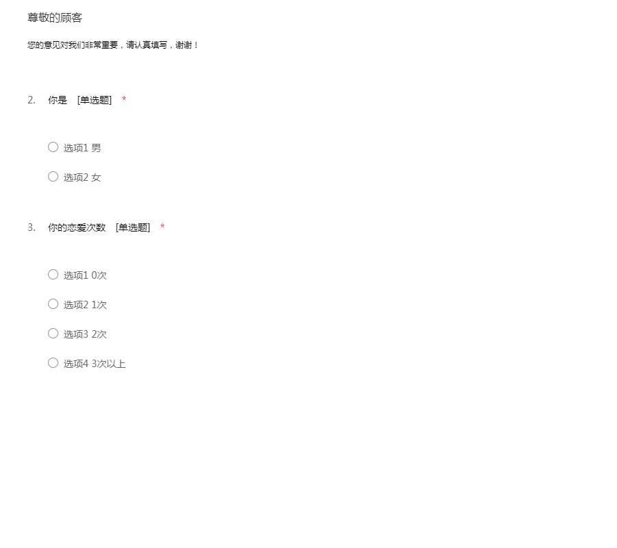 亲爱的同学:你好!为了更好地了解大家的恋爱观及恋爱状况,为大家现在或以后可能遇到的问题提供帮助,我们特设计此问卷。问卷所用数据均用于统计分析且为匿名调查,我们会保护你的隐私权,望如实回答。非常感谢你的支持。