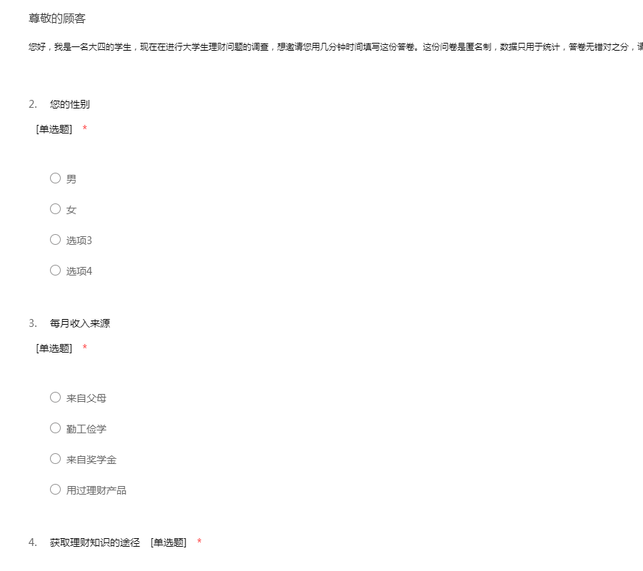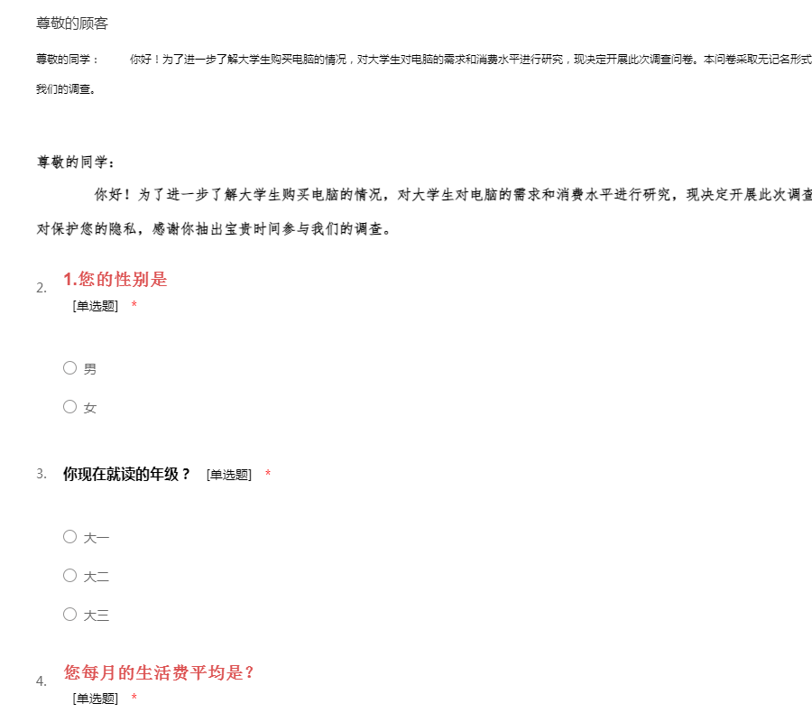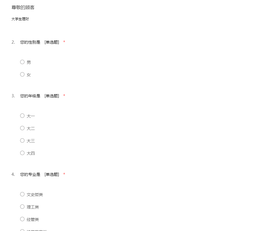 首页 > 问卷模板 > 学生 > 大学生消费观
