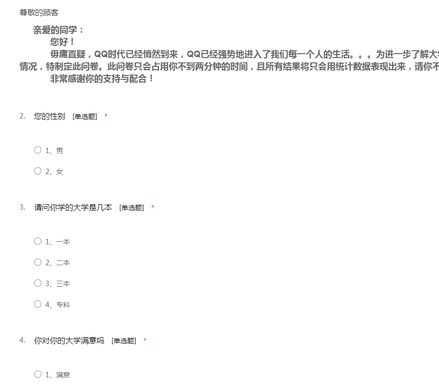 3.你对你的大学满意吗 A.满意 B.不满意 C.还好