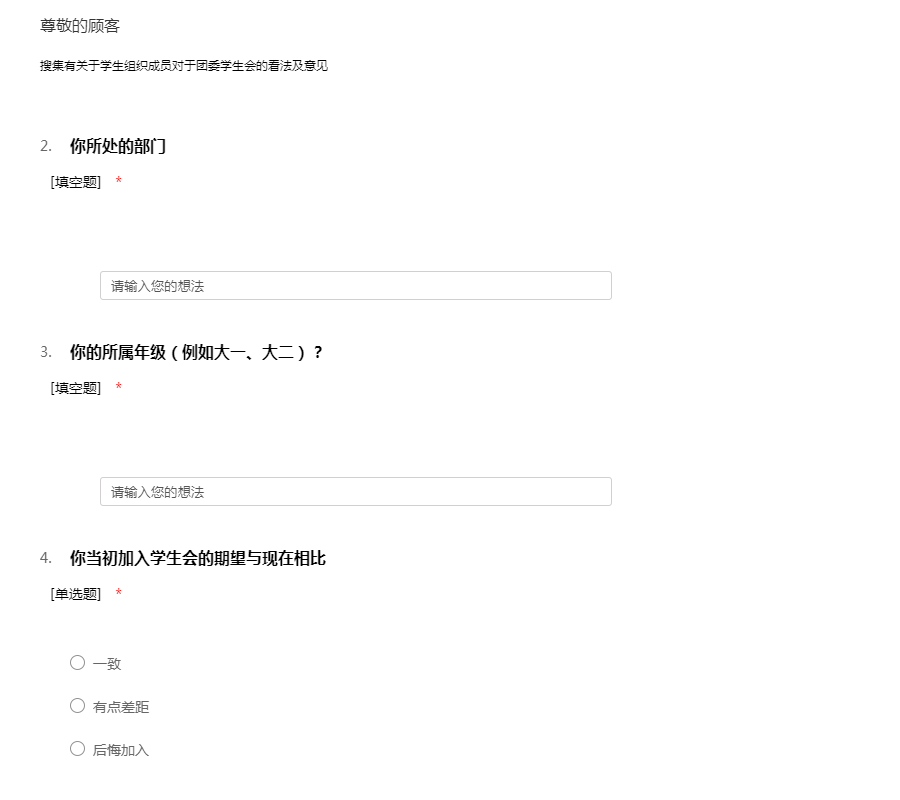 团委学生会调查问卷