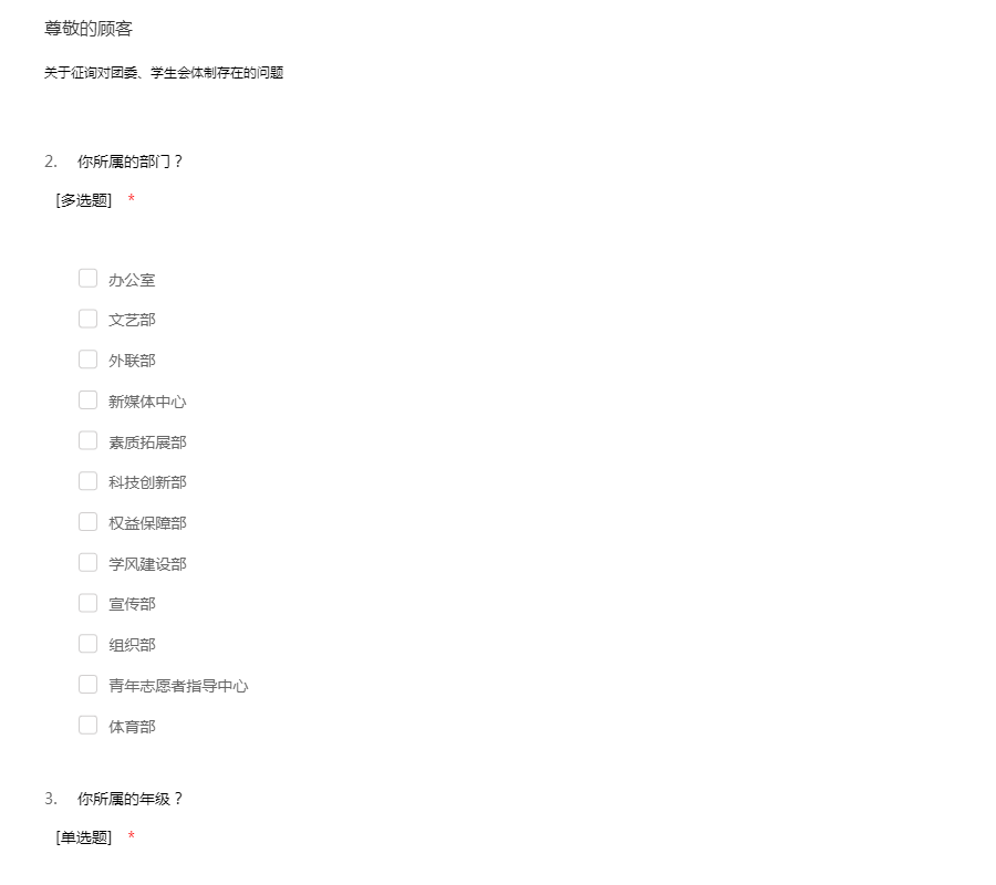 团委、学生会问卷调查问答
