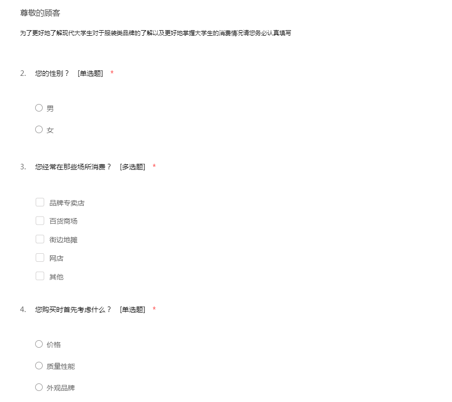 为了更好地了解现代大学生对于服装类品牌的了解以及更好地掌握大学生的消费情况请您务必认真填写