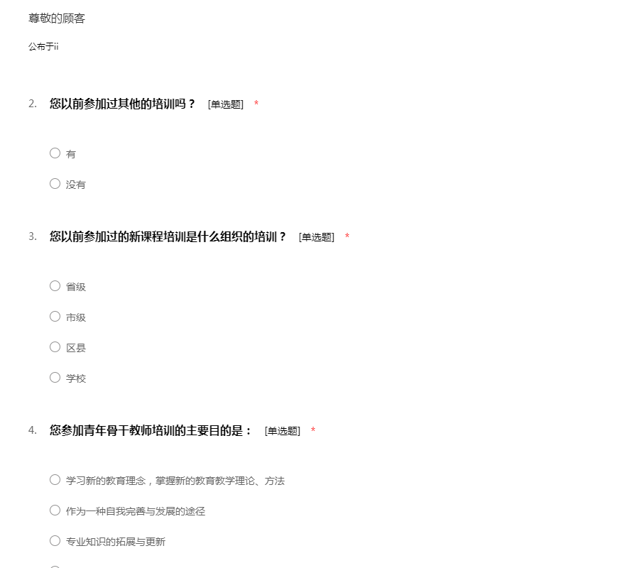 为了更好地了解您的学习培训需求,听取您对营销培训工作的宝贵意见和建议,使今后的培训课程内容更加贴近实际营销业务需求,培训组织方式和时间安排更加适合,切实为大家的营销业务拓展和业绩提升带来帮助,请您填写本调查问卷。