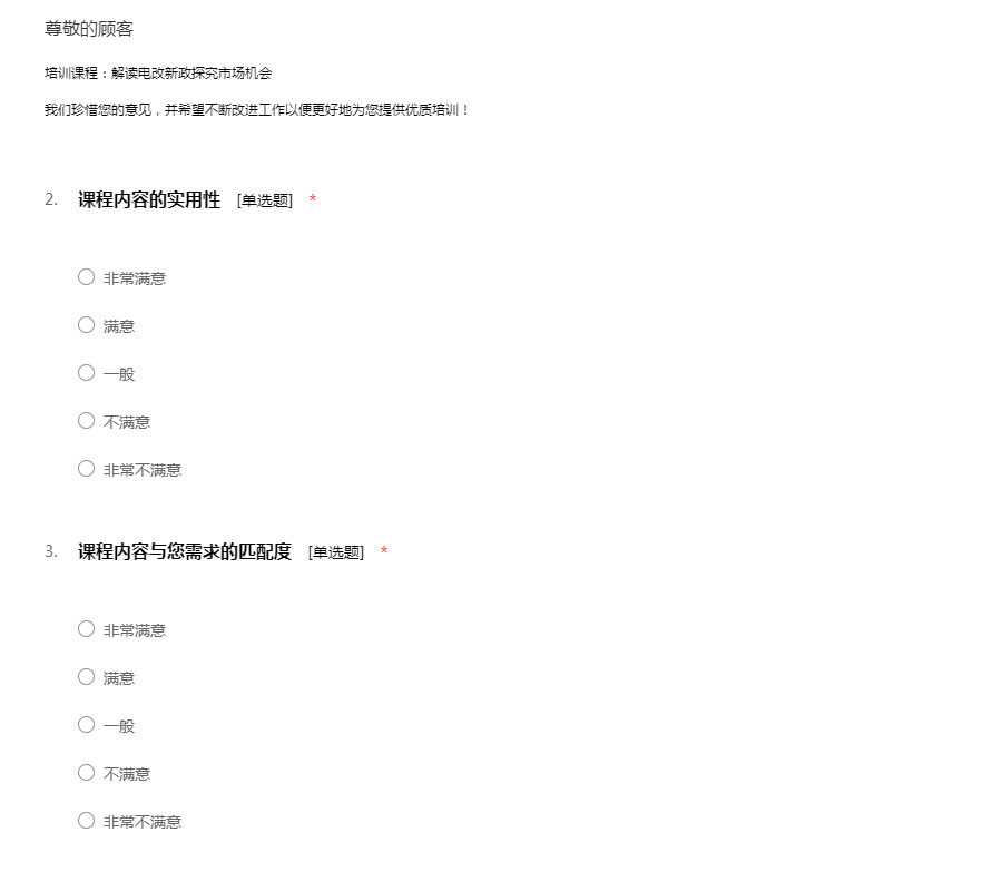 培训课程:解读电改新政探究市场机会我们珍惜您的意见,并希望不断改进工作以便更好地为您提供优质培训!