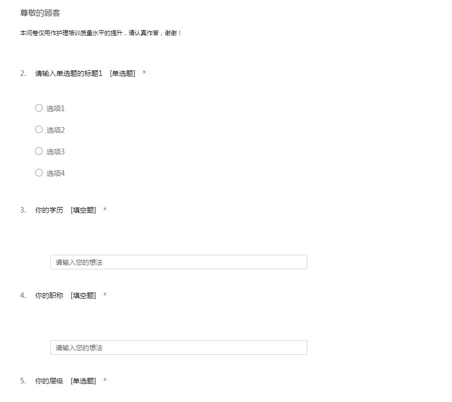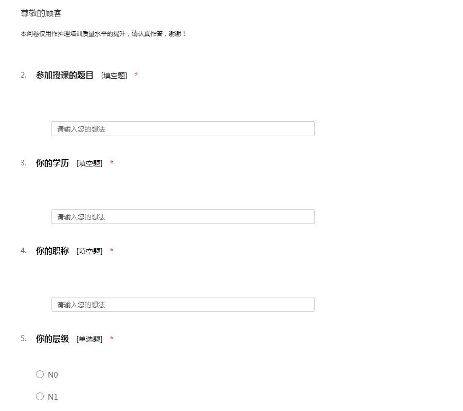 本问卷仅用作护理培训质量水平的提升,请认真作答,谢谢!