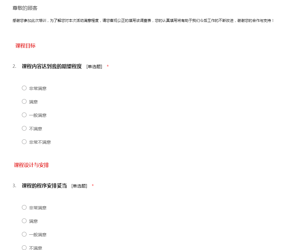 您好!欢迎您参加这次51调查网的问卷.这是一份培训效果反馈调查问卷。您的建议对我们很重要。