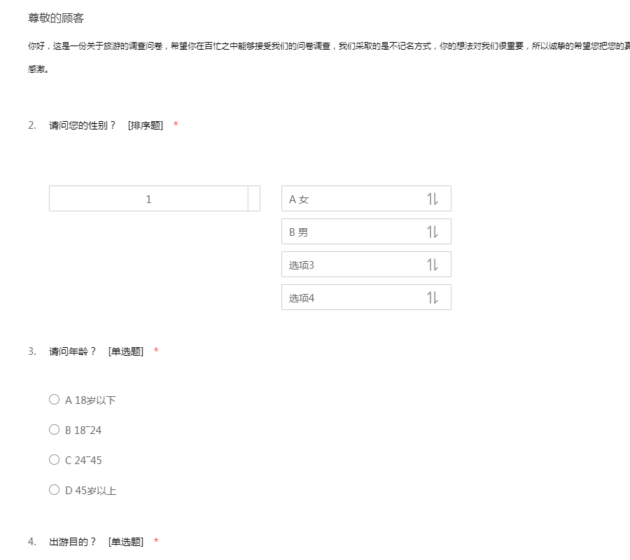 你好,这是一份关于旅游的调查问卷,希望你在百忙之中能够接受我们的问卷调查,我们采取的是不记名方式,你的想法对我们很重要,所以诚挚的希望您把您的真实想法填写到问卷上,谢谢您的合作,我们不胜感激。