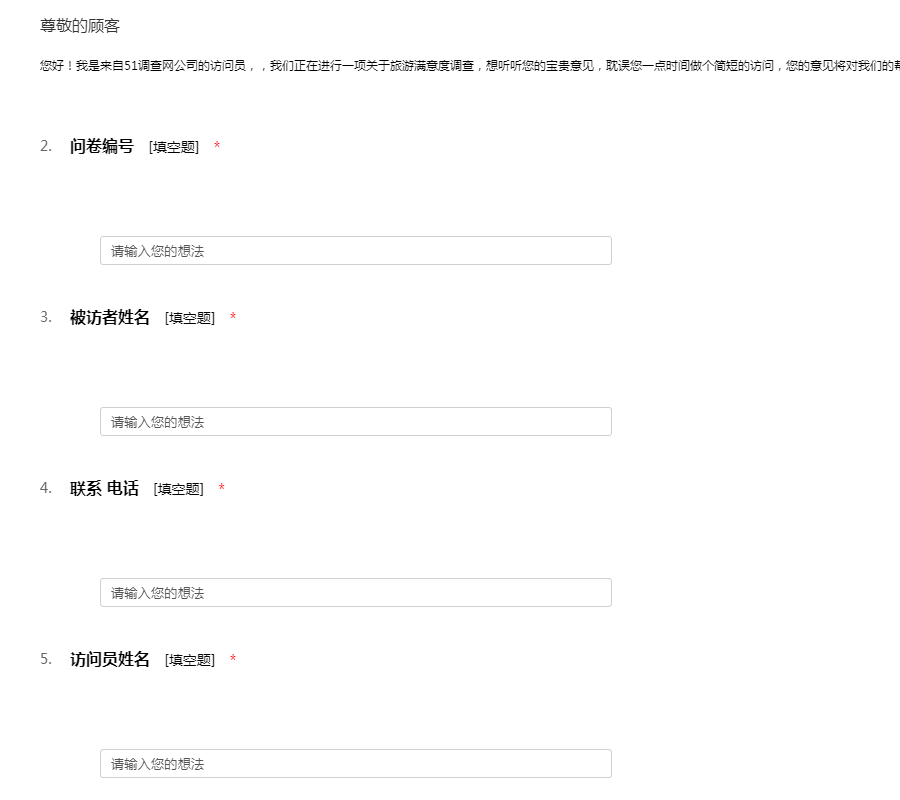 您好!我是来自51调查网公司的访问员,,我们正在进行一项关于旅游满意度调查,想听听您的宝贵意见,耽误您一点时间做个简短的访问,您的意见将对我们的帮助很大。