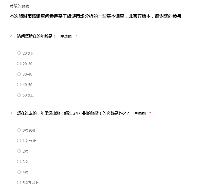 本次旅游市场调查问卷是基于旅游市场分析的一些基本调查,非官方版本,感谢您的参与