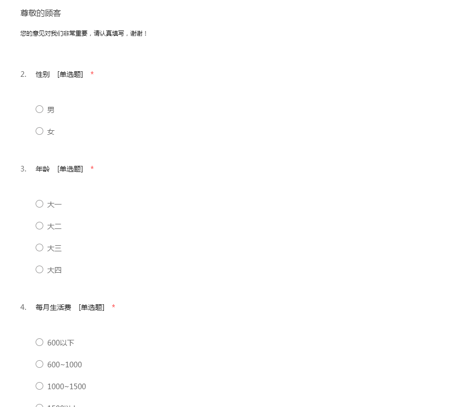 您的意见对我们非常重要,请认真填写,谢谢!本问卷只用于上课交流,无其他商业用途。