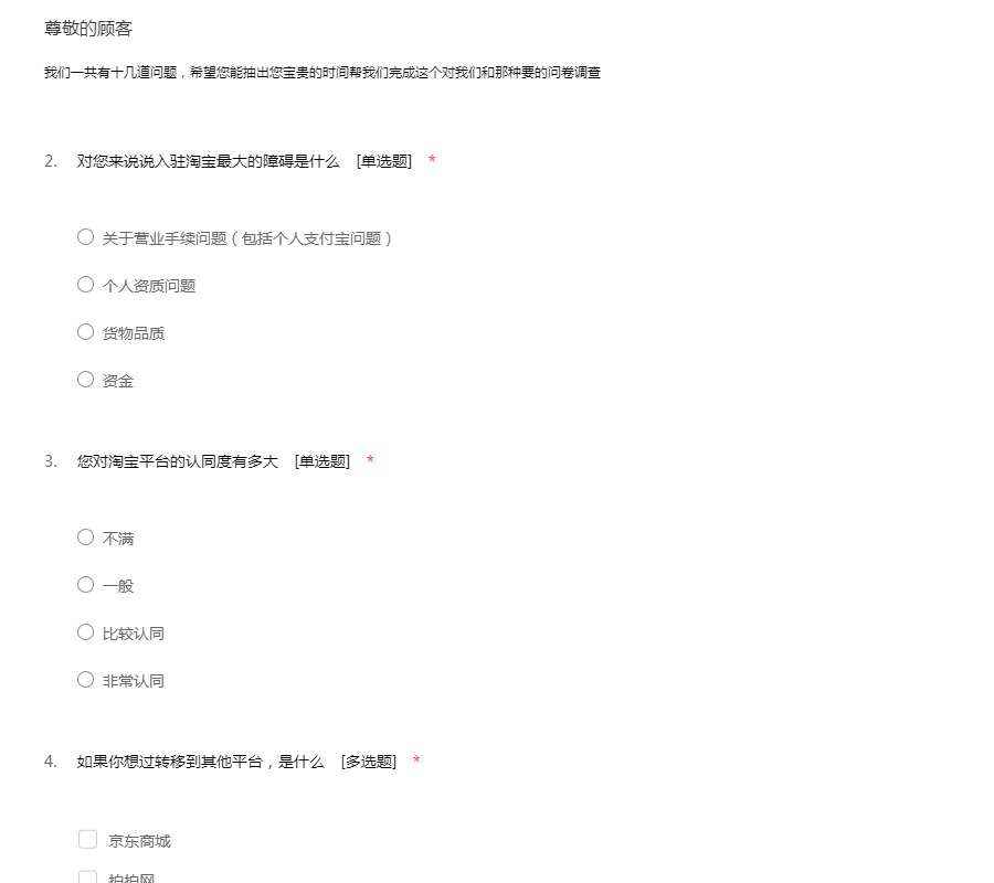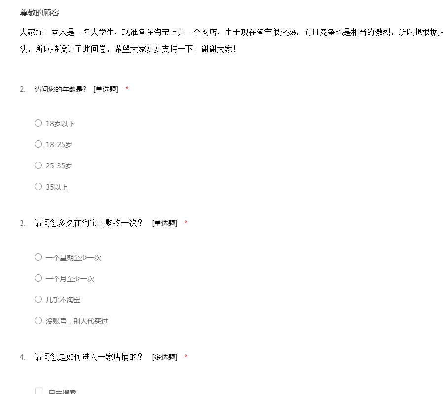 淘宝店铺调查问卷