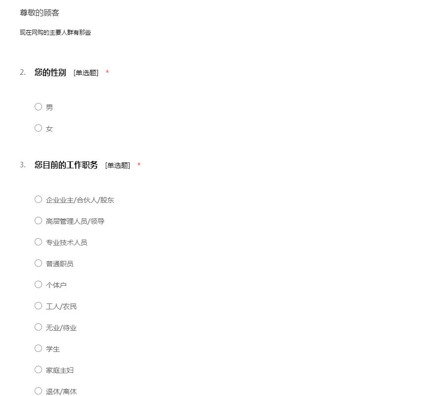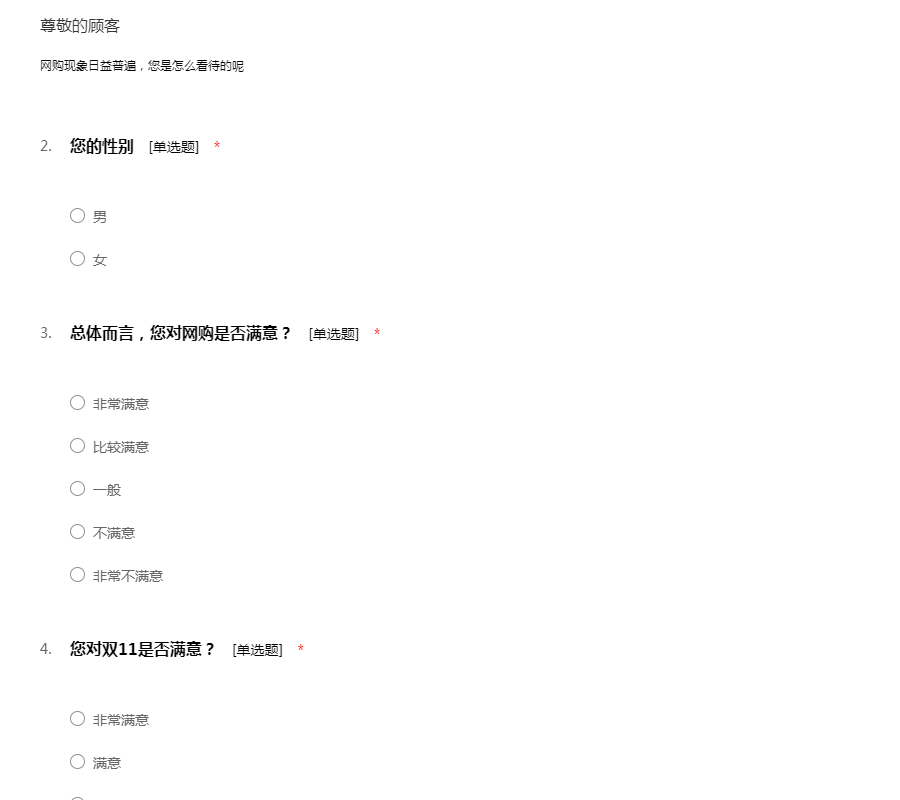 亲爱的朋友,你好!不知从何时起,网购已成为不少人的习惯。今年刚刚过去的双十一交易额,竟突破了570亿元。对于如此火热的网上购物,您有什么特别的喜好吗?快来填写我们这份网购消费者问卷调查表,留下你的宝贵建议吧!