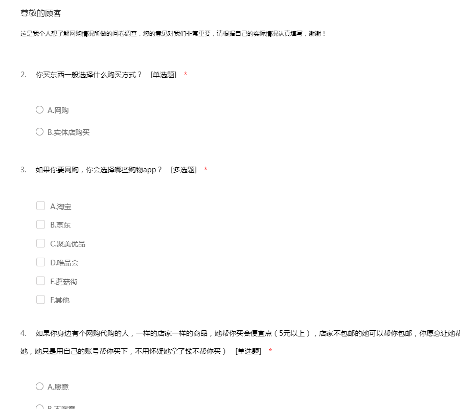 您好,耽误您几分钟时间,很感谢您能在百忙之中接受我们的调查,此次调查是我们的项目调查,是关于网购的课题作业,很感谢您的支持和理解,谢谢。