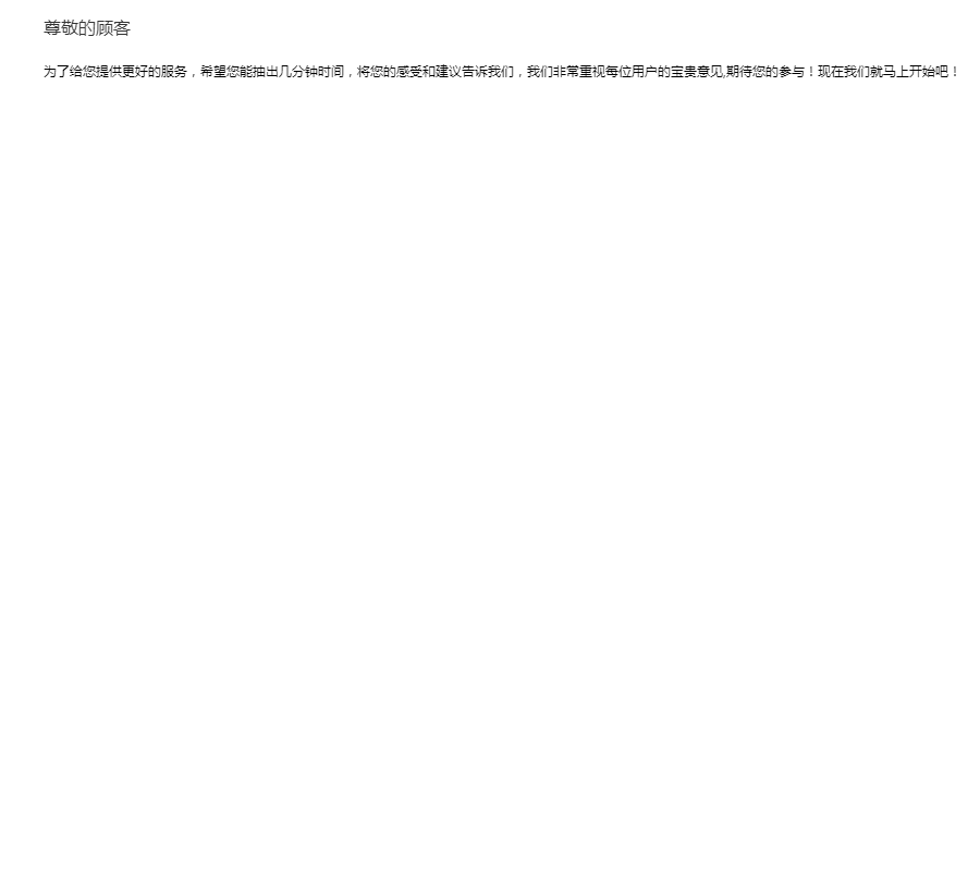 为了给您提供更好的服务,希望您能抽出几分钟时间,将您的感受和建议告诉我们,我们非常重视每位用户的宝贵意见,期待您的参与!现在我们就马上开始吧!