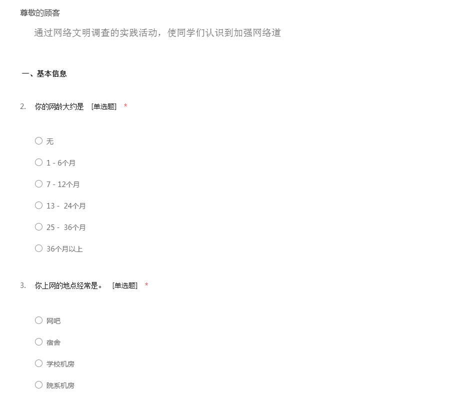 网络公德调查问卷