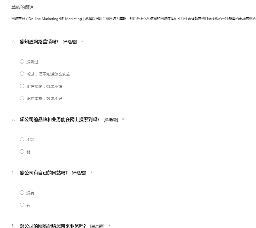 网络营销调查问卷