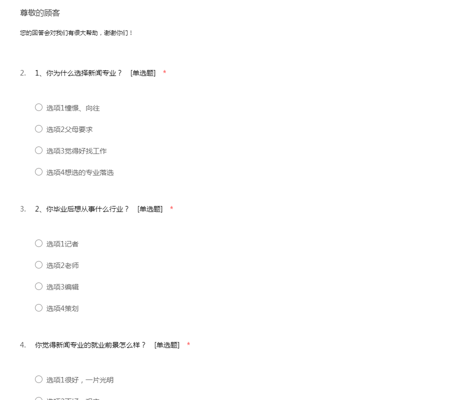 亲爱的同学们:你们好!为了设计出更适合当代大学生要求的职业装,从而满足广大学生的需求,我们设计了此次调查问卷来征求您宝贵的意见,希望您认真填写以下问卷。感谢您的支持与合作!
