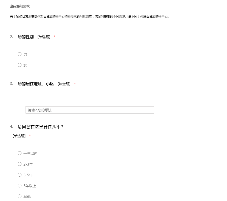 关于我们日常消费群体对百货或购物中心购物需求的问卷调查,满足消费者的不同需求开设不同于传统百货或购物中心。