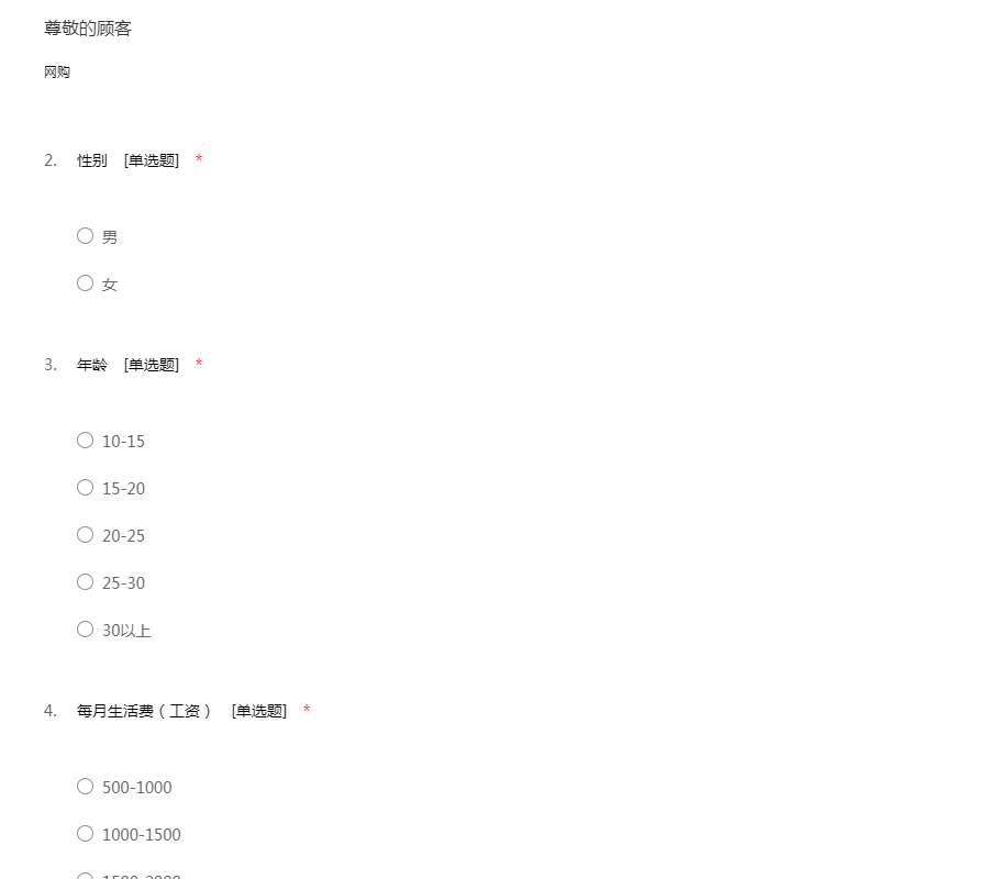你好,为了了解网上购物的情况及其习惯,我们开展了这次问卷调查活动。请选择符合你意愿的选项,感谢你抽空完成这份调查问卷,谢谢。
