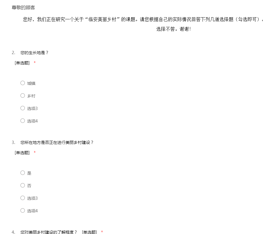您好,我们正在研究一个关于“临安美丽乡村”的课题。请您根据自己的实际情况回答下列几道选择题(勾选即可)。对于某些问题,若您感觉困难,可选择不答。谢谢!