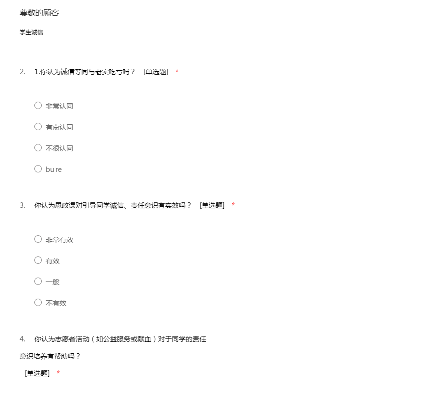 高职学校学生诚信与责任意识培养过程中载体的有效性调查问卷