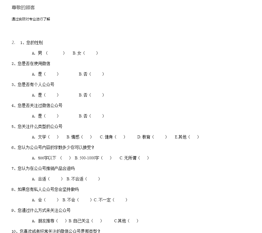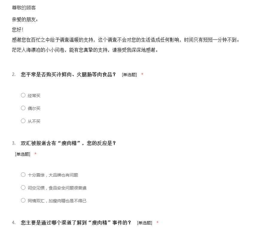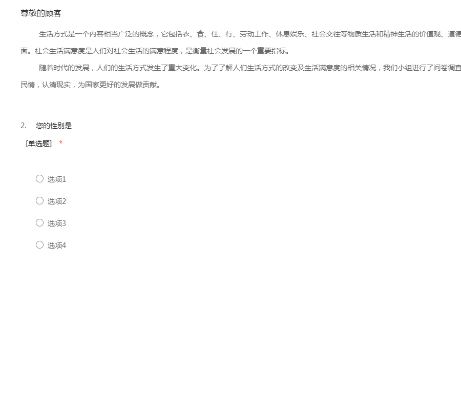 亲爱的朋友: 您好! 感谢您在百忙之中给予调查温暖的支持,这个调查不会对您的生活造成任何影响,时间只有短短一分钟不到。 茫茫人海漂泊的小小问卷,能有您真挚的支持,请接受我深深地感谢。